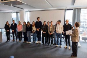 Die folgenden Fotos zeigen Prof. Susan Hinterding im Gespräch mit Teilnehmern am “Young-Talent-Award” und die vier Preisträger. Quelle: BSP Business and Law School – Campus Hamburg, Anna Dill